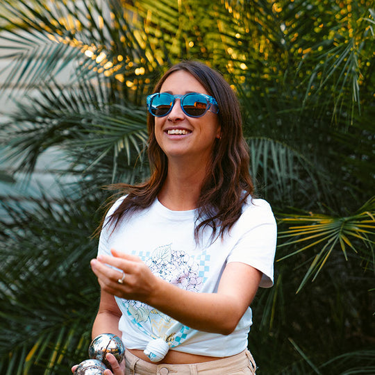 - Retro Design: Bold blue frame with funky circular lenses for a stylish look.